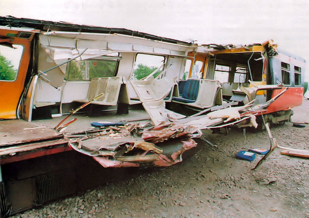 La velocidad combinada de ambos trenes era de unos 100 km/h, de modo que los dos coches de cabeza quedaron destrozados. Murieron ambos maquinistas y dos pasajeros, y otros 22 resultaron heridos de diversa consideración.